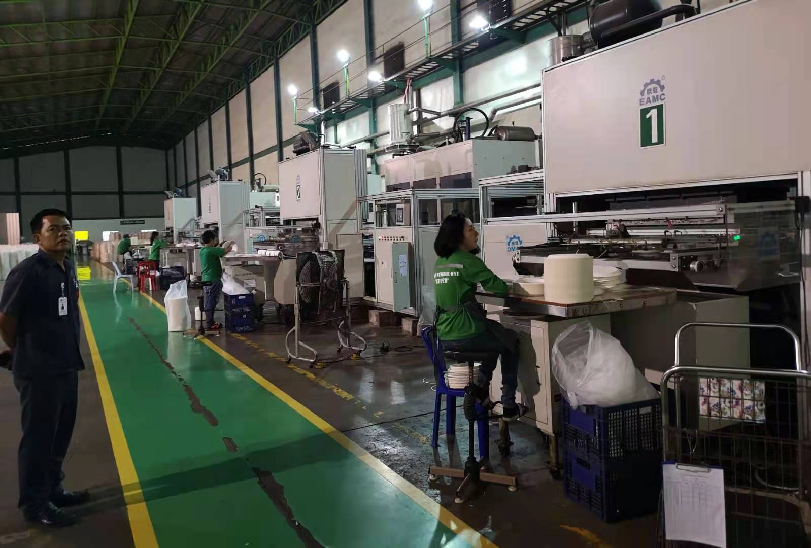 2016-8,泰國(guó)著名蔗渣漿廠EPPCO紙漿模塑項(xiàng)目,第一期購(gòu)買4條EAMC生產(chǎn)線投入使用。EPPCO是泰國(guó)最大的蔗渣漿廠,中國(guó)許多高端的紙漿模塑廠家都采用EPPCO生產(chǎn)的蔗渣漿。目前已經(jīng)投入使用。之后第二期又購(gòu)買了浙江歐亞聯(lián)合裝備集團(tuán)有限公司輕工50條紙漿模塑生產(chǎn)線。