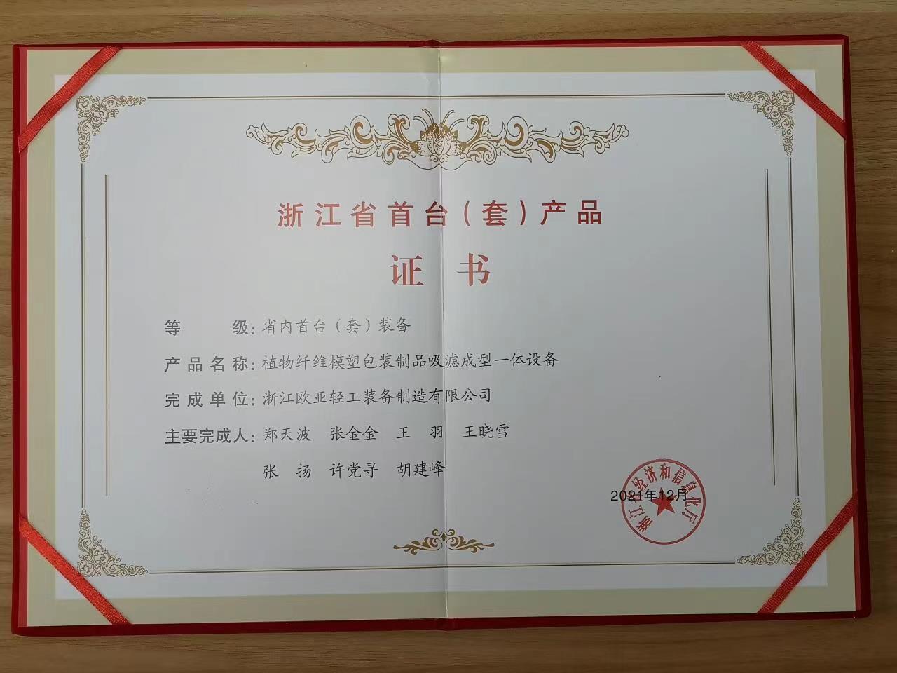> 歐亞輕工:植物纖維模塑一體機(jī)獲得浙江省首臺套證書