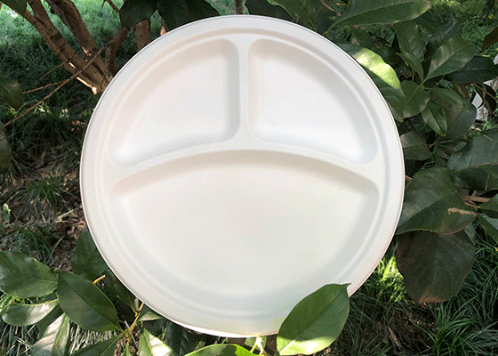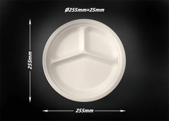 泰國工廠大量現(xiàn)貨供應:紙漿模塑餐具; 10寸三格圓盤